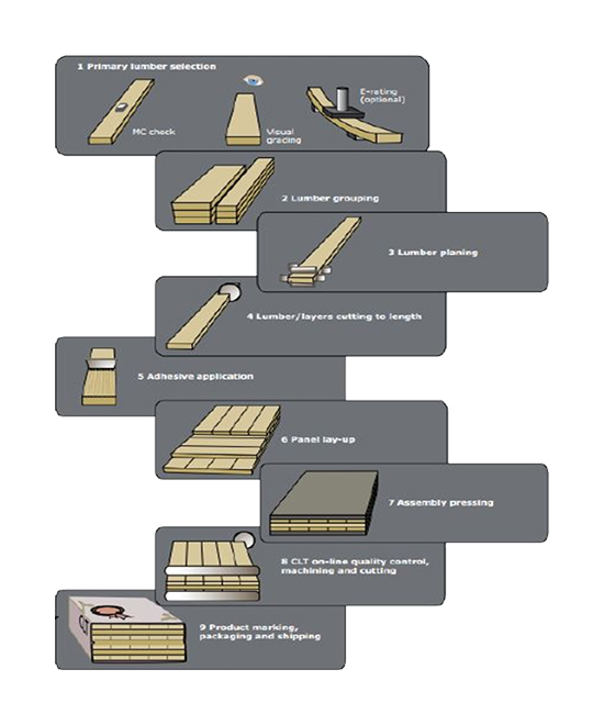 벽체 또는 바닥재를 모듈 구조로 구성하여 생산 유럽 최대 생산업체(binderholz) 적용방식 소량생산에 적합